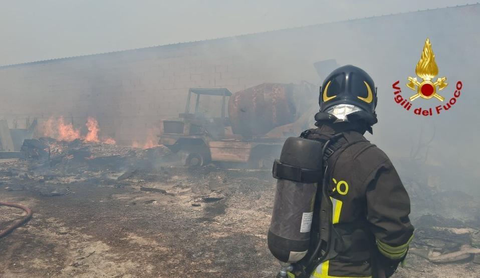 Due squadre di Vigili del fuoco del Comando di Cagliari con il supporto di due autobotti e un carro aria stanno intervenendo per un incendio che sta coinvolgendo due capannoni adiacenti, nella zona industriale di Bardella Comune di Dolianova. Non si esclude che l’incendio sia partito dalla vegetazione e si sia propagato nelle aree esterne dei due capannoni.