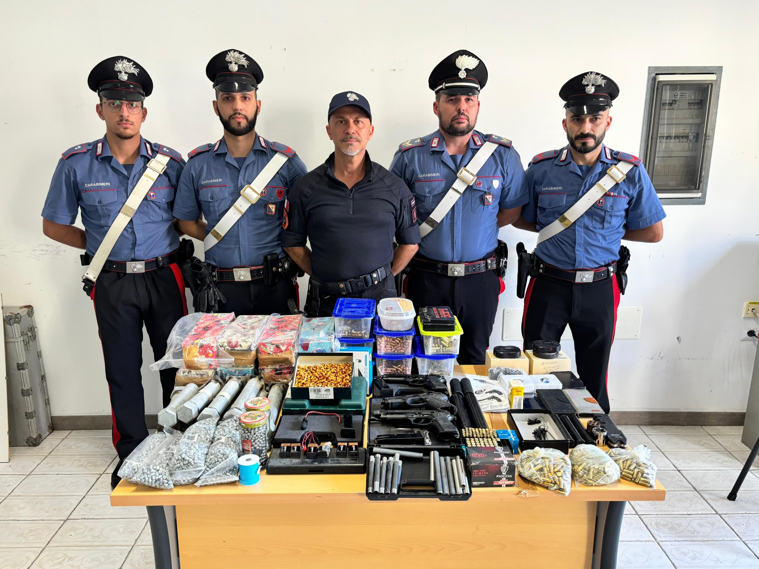La svolta è arrivata con la perquisizione dell’abitazione dell’uomo. Gli artificieri dei Carabinieri hanno scoperto un vero e proprio laboratorio clandestino contenente vari materiali esplosivi, tra i quali alcuni ordigni identici a quello esploso poche ore prima e già assemblati con detonatore, batteria e innesco a rilascio di pressione. Inoltre, sono state sequestrate tre pistole modificate, diversi silenziatori realizzati artigianalmente e attrezzature per la costruzione di ulteriori dispositivi esplosivi rudimentali.