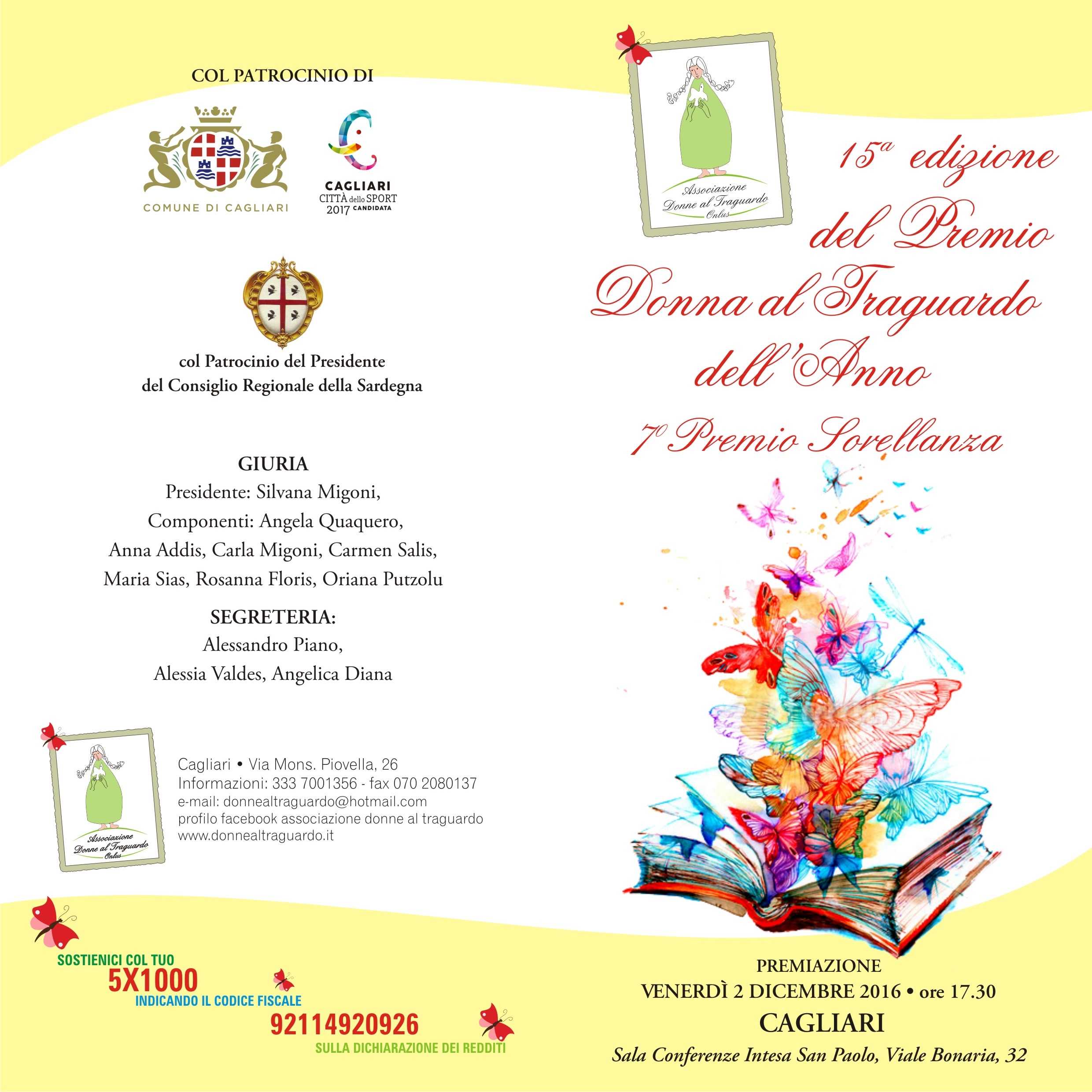 Per l’invio delle storie c’è tempo fino al prossimo 21 Novembre 2016. Gli elaborati potranno essere spediti per mail ([email protected]), posta semplice o consegnati a mano nella sede di via Monsignor Piovella 26 a Cagliari (secondo piano scuola E.Lussu). Il concorso è aperto a tutti, uomini e donne, ma il contenuto delle storie dovrà riguardare unicamente vissuti femminili. Ai migliori scrittori l’Associazione Donne al Traguardo, promotrice del Premio, dedica una speciale sezione del bando che è reperibile sul sito dell’associazione o nella sede sociale. Naturalmente, le donne potranno raccontarsi anche in prima persona. Una selezione delle storie migliori pervenute alla giuria sarà pubblicata nella quindicesima edizione del volume di Storie di ordinaria resistenza femminile. Il libro sarà presentato al pubblico il 2 Dicembre 2016, data per la quale è fissata la manifestazione finale del concorso con le premiazioni. Il bando, sarà diffuso in tutti i paesi europei ed extraeuropei coinvolgendo i circoli degli emigrati sardi nel mondo. Al Concorso Donna al Traguardo dell’Anno è abbinata la settima edizione del Premio Sorellanza, proposto per evidenziare donne che svolgono progetti o azioni importanti a favore delle altre donne. Chiunque può proporre una concorrente, in questo caso basta indicarne le generalità e le motivazioni. Il Premio gode del patrocinio del Comune di Cagliari e della Presidenza del Consiglio Regionale.
