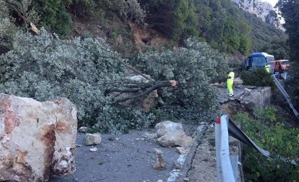 La parete di roccia franata, situata nel territorio di competenza del comune di Dorgali, è di considerevoli dimensioni (circa 20 metri di larghezza e 30 di altezza) ed il materiale staccatosi dalla pendice è rotolato da un’altezza di circa 450 metri sulla vegetazione del costone per poi impattare violentemente sulla superficie stradale provocando il cedimento del muro di sostegno della corsia di marcia (lato valle) e il danneggiamento di oltre 30 metri di strada.