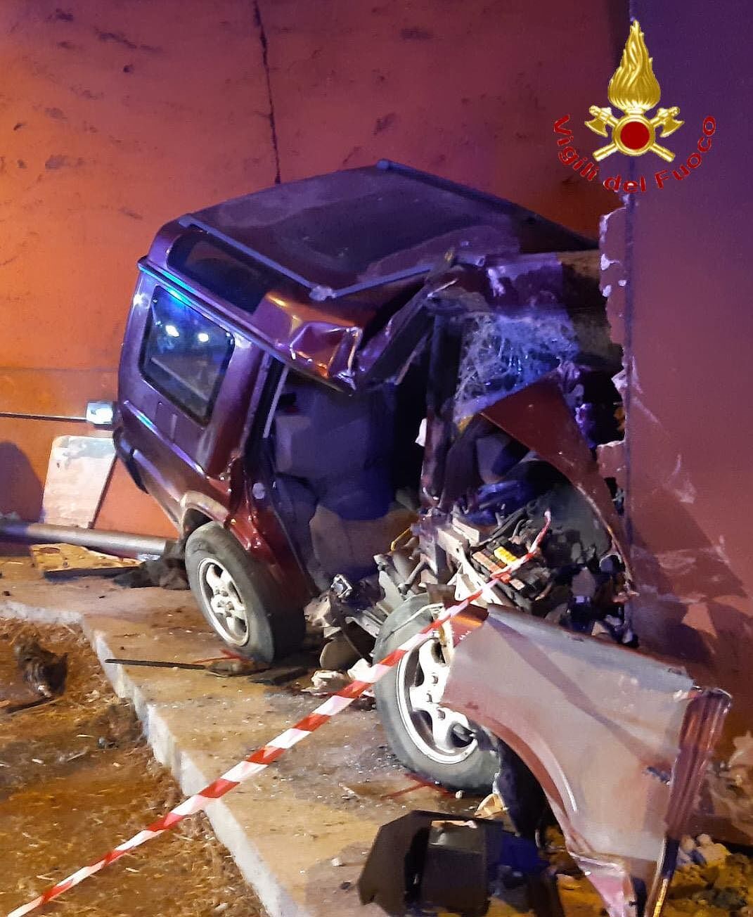 Non è chiara la dinamica dell’incidente, le notizie sono ancora frammentarie; per cause in corso di accertamento l’auto si è schiantata violentemente su una spalletta di cemento armato di una banchina di sosta all’interno della galleria Genna Ortiga.