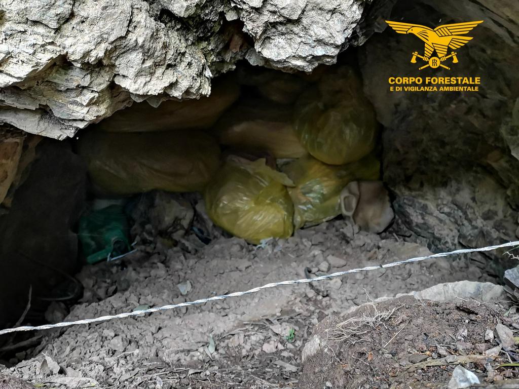 All’intervento hanno partecipato 30 agenti Forestali supportati dal Nucleo artificieri e dal Nucleo Cinofili della Polizia di Stato, oltre che dal Nucleo Cinofili dell’Arma di Carabinieri. L’operazione, concentrata in due aziende zootecniche, ha permesso di individuare due grossi depositi di droga già lavorata, essiccata e confezionata in sacchi da circa 1 kg. Il primo deposito, individuato nelle pertinenze di un’azienda agricola in località “Caddaxiou” è stato scoperto on una coltura ortiva, all’interno di una botola. Gli inquirenti hanno subito effettuato un’ispezione scoprendo l’interno di una cisterna in vetroresina, completamente interrata. Dalla cisterna sono stati recuperati 230 sacchi contenenti marijuana, per 210 kg. Il secondo deposito individuato dagli investigatori nel corso della perquisizione, avvenuta in località “Case Morgano”, era un nascondiglio ricavato in un anfratto roccioso nelle pertinenze dell’azienda. Qui sono stati rivenuti 28 sacchi di plastica che contenevano sempre marijuana, per 132 kg. Oltre allo stupefacente, nei locali è stata rinvenuta e sequestrata l’attrezzatura usata per la lavorazione e il confezionamento delle dosi.