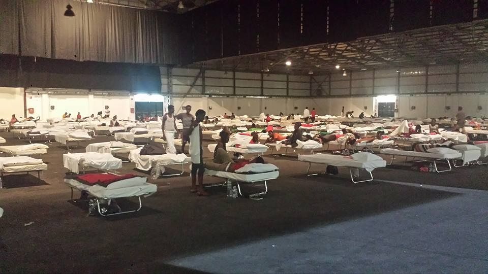Eccoli, i migranti che dormono nella notte dentro la Fiera di Cagliari. Una foto destinata a restare nella storia di Cagliari, il fotogramma della disperazione e dell’accoglienza. Una foto che dalla Sardegna sa di dramma europeo: Cagliari ha dedicato la sua Fiera campionaria pre ospitare i profughi. Dove c’erano i padiglioni della nautica, ci sono lettini improvvisati. Con l’appello che parte da Alberto Bertolotti, presidente di Confcommercio: “In Fiera: questo il dormitorio allestito per i 300 poveri eritrei accolti ieri. Qualcuno di loro ha chiamato casa col mio telefono e la cosa mi ha emozionato un po’… Qui servono sopratutto vettovaglie monouso, scarpe e prodotti per igiene personale. Forza venite gente!”.