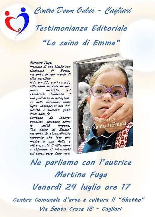 Venerdi 24 luglio, alle ore 17, presso la sala del ghetto in via Santa Croce a Cagliari, l’autrice Martina Fuga parlerà del suo libro “Lo zaino di Emma”