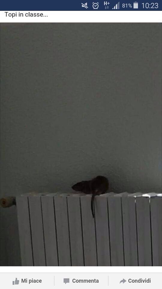 Benvenuti alla scuola Eleonora d’Arborea: le lezioni devono essere talmente interessanti che in aula prendono posto…anche blatte e topi. Questo che vedete nella foto è il topo gigante avvistato questa mattina dagli alunni della storica scuola nel centro di Cagliari. “C’è bisogno di una urgente disinfestazione e il preside non interviene- dicono gli alunni a Cagliari Online- i topi possono portare malattie e le blatte camminano indisturbate durante le ore di lezione”.