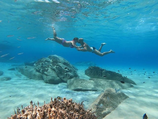 Un bacio appassionato (in apnea) sott’acqua nel bellissimo fondale del lido Tamatete a Castiadas. Elisa e Daniel ci raccontano questa immagine la loro Sardegna più bella!