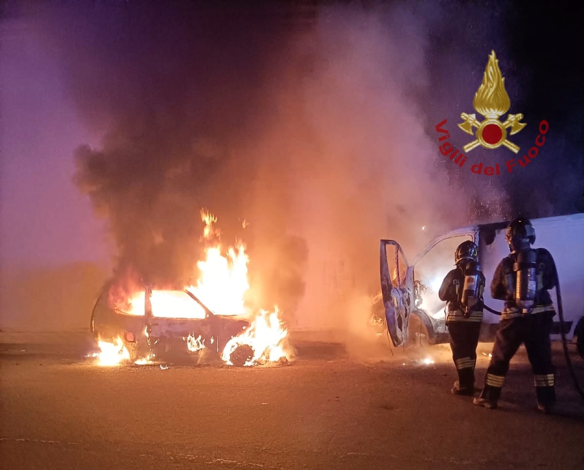 I Vigili del fuoco con due automezzi e sette operatori hanno spento le fiamme, messo in sicurezza l’area e avviato gli accertamenti per stabilire le probabili cause dell’incendio che ha coinvolto i veicoli.