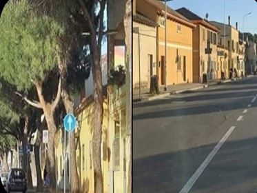 “<<Alea iacta est>>. Nelle foto, il prima e il dopo”, commenta l’ex sindaco Valter Piscedda, che mette a confronto le immagini della via fino a qualche giorno da coi pini e della via oggi, spoglia, dopo l’intervento. “In tanti”, aggiunge Piscedda, “me compreso, abbiamo scritto e letto in proposito. Ogni mio ulteriore commento sarebbe superfluo, perché ormai quel che è fatto, è fatto.