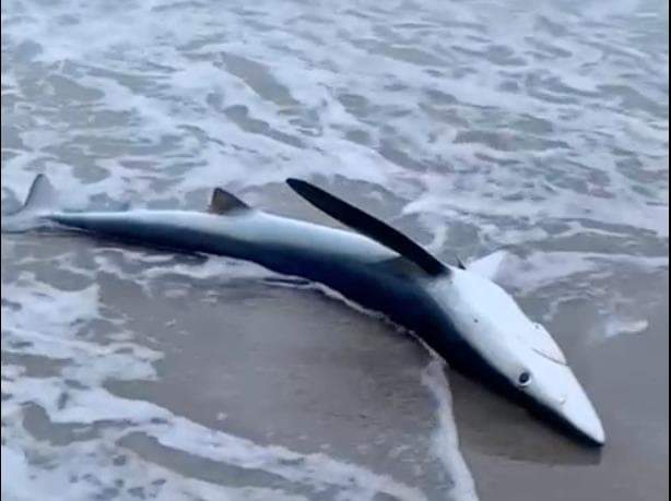Esemplare di verdesca spiaggiato e riportato in mare nell’area Marina Protetta del Sinis: grazie al pronto intervento di vari operatori, lo squalo azzurro è stato salvato da morte certa.