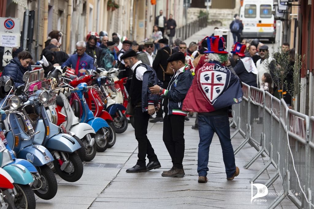 Facce da Vespiglia: tutte colorate con le bandiere del Cagliari, il corteo che ravviva il centro storico. Nella foto di Davide Loi il bellissimo corteo della Vespiglia di oggi, quest’anno rigorosamente rossoblù in onore del centenario del Cagliari.