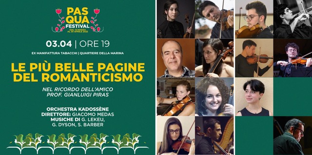 Sul palco sarà protagonista l’Orchestra Ensemble Kadossène, diretta dal Maestro Giacomo Medas, che eseguirà l’opera di Guillame Lekeu, “L’anima Mia è triste fino alla morte”, il “Concerto da Chiesa” di George Dyson, e “L’adagio per archi op. 11” di Samuel Barber.