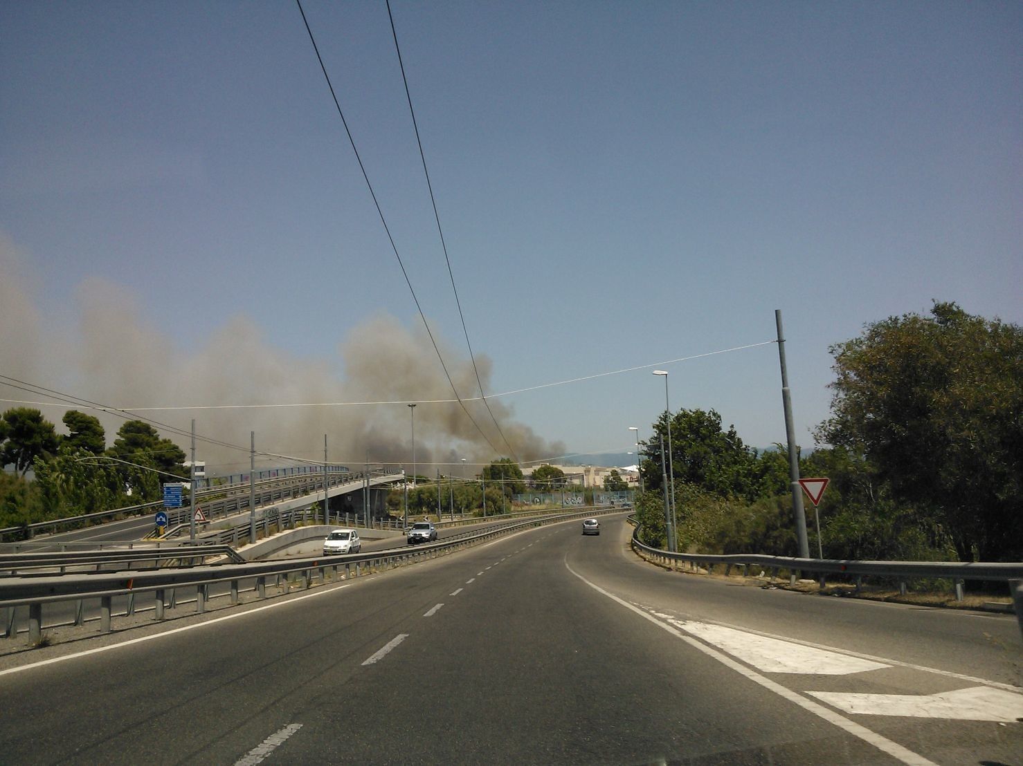 Fiamme tra Quartu e Quartucciu. Un grosso incendio è scoppiato intorno alle 14 vicino al centro commerciale Le Vele. Sul posto sono intervenuti diversi mezzi dei vigili del fuoco che hanno domato il rogo. Nella foto l’incendio visto dagli automobilisti di viale Marconi.