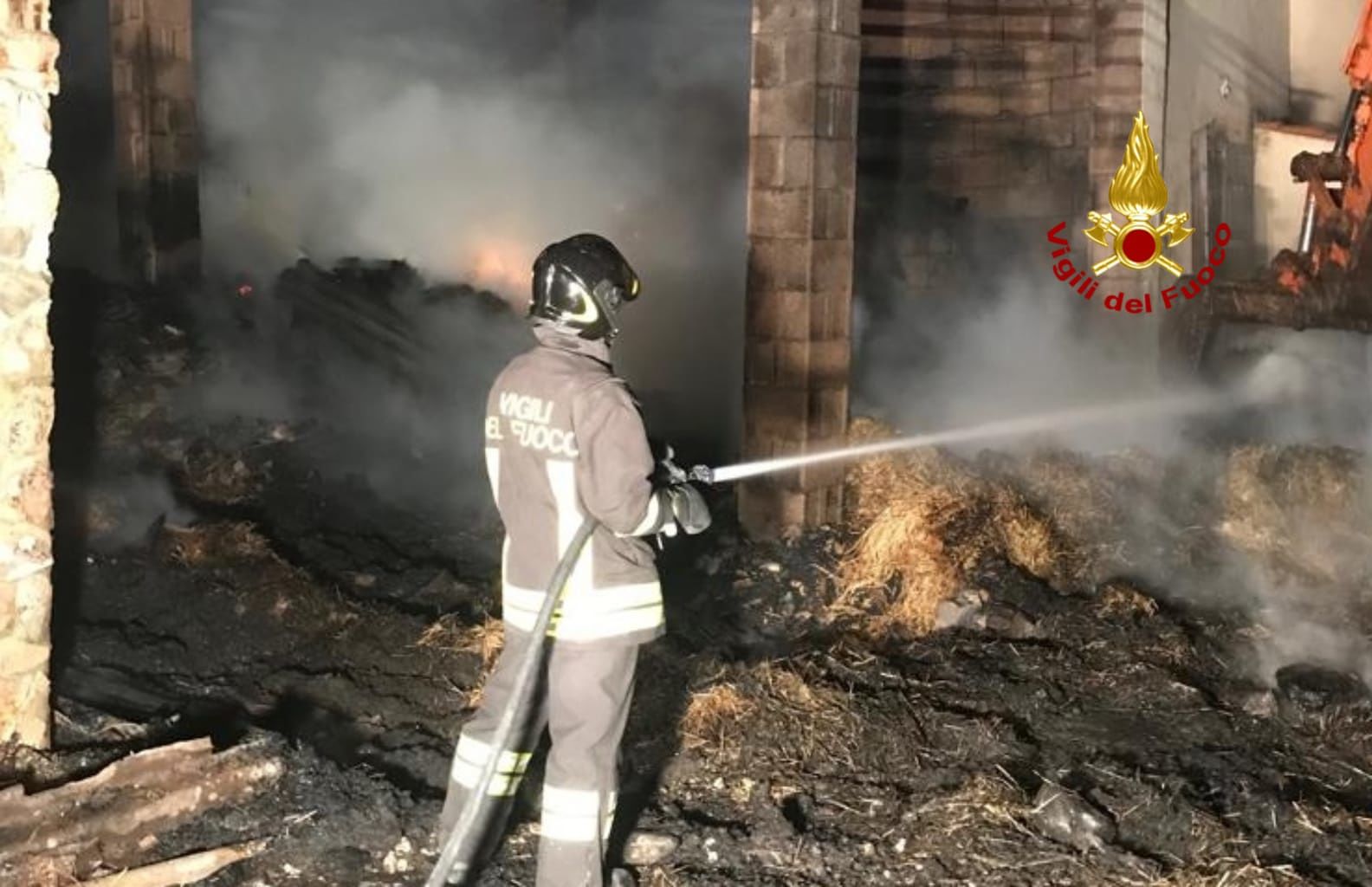 Le fiamme hanno interessato circa 2500 balle di foraggio, e coinvolto un trattore e un’autovettura.