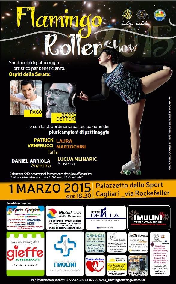 La società di pattinaggio artistico Flamingo Skating Club a.s.d., unitamente al Rotary Club di Quartu Sant’Elena e all’International Inner Wheel di Quartu Sant’Elena, organizzano una manifestazione sportiva di Pattinaggio Artistico e di arte varia denominata “FLAMINGO ROLLER SHOW 2015“ il 1° Marzo 2015 alle ore 18.30, presso il Palasport di Cagliari in Via Rockefeller,.