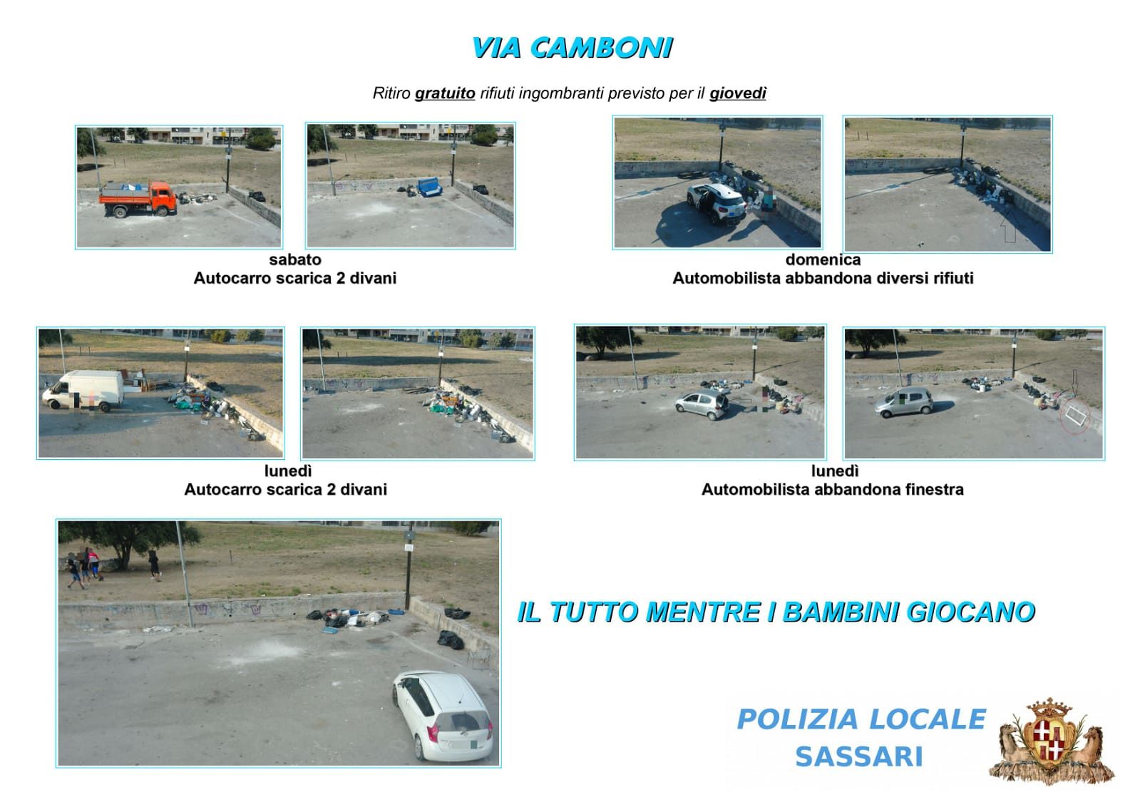Ancora una volta le videocamere erano collocate in via Camboni e in via Cadamosto e per la prima volta in via Londra. In via Camboni, dove il giovedì c’è l’isola ecologica mobile per il ritiro gratuito degli ingombranti, sono state registrate il maggior numero di violazioni. Sabato un autocarro ha scaricato due divani, domenica e lunedì sono stati ripresi diversi cittadini che abbandonavano rifiuti indifferenziati nel piazzale, e uno in particolare una finestra; nelle immagini si vede anche chiaramente un furgone che getta numerosi arredi. Lo spiazzo di via Camboni spesso è scelto dai bambini per giocare, che si ritrovano, a causa degli incivili, a correre in una discarica a cielo aperto. Grazie alle foto-trappole ora le persone che non rispettano le regole e i concittadini sono facilmente identificate e sanzionate. L’area è ripulita e restituita alla città, grazie al settore Ambiente e Verde pubblico e ad Ambiente Italia, e le spese sono a carico degli incivili che le dovranno pagare in aggiunta alla multa.