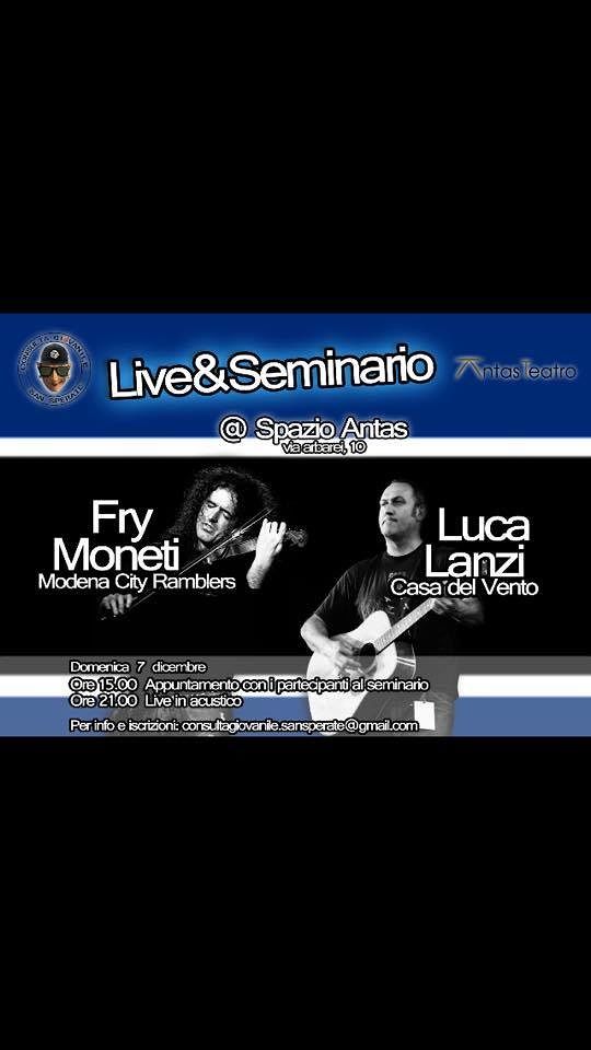 Appuntamento da non perdere quello del 7 dicembre a San Sperate presso lo spazio Antas Teatro in Via Arbarei 10. È infatti in programma un seminario musicale che avrà come docenti Fry Moneti dei Modena City Ramblers e Luca Lanzi de La Casa del Vento. Il tutto a partire dalle ore 15:00. In serata, alle ore 21:00, si salirà sul palco per il live acustico al quale coloro che parteciperanno al seminario, potranno anch’essi unirsi in musica ai due artisti. Sarà presente anche il banchetto di Emergency di Cagliari. Per info ed iscrizioni: [email protected]