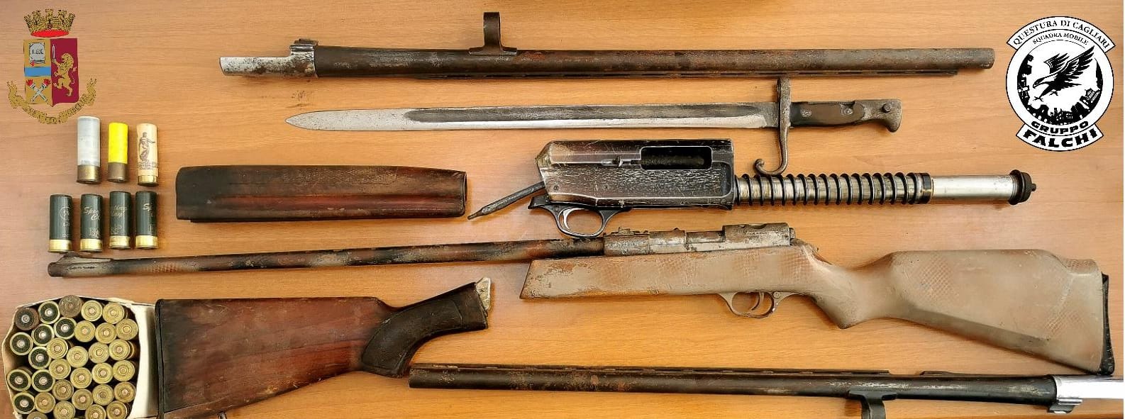 Le armi, poste in sicurezza, sono state sequestrate e l’uomo, un agricoltore cinquantenne di Capoterra, è stato denunciato in stato di libertà per detenzione illegale di armi e munizioni.