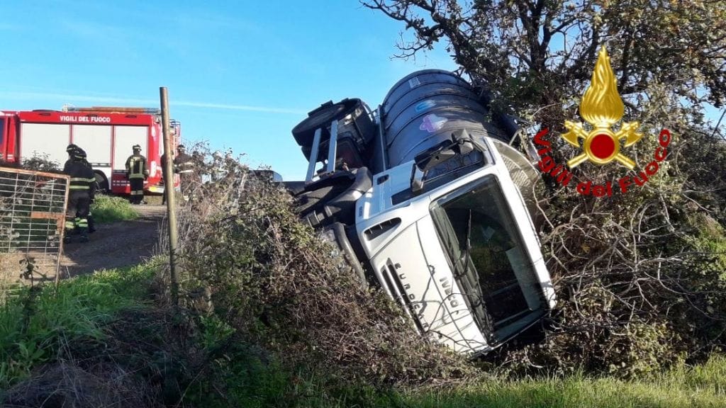 Incidente spettacolare ma, per fortuna, senza feriti, sulle strade sarde. Un uomo alla guida di una cisterna piena di latte è uscito fuori strada e si è ribaltato sulla Sp 65, tra Paulilatino e Abbbasanta. Buona parte del latte è stato salvato, travasandolo in una seconda cisterna, arrivata dopo pochi minuti. L’uomo non ha riportato nemmeno un graffio e i Vigili del fuoco sono al lavoro anche per comprendere il perchè dell’incidente: all’origine del volo fuori strada e del ribaltamento, forse, un guasto meccanico.