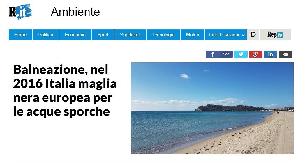 La gaffe del giornale di Calabresi: una foto della spiaggia del Poetto in un articolo sul mare inquinato.