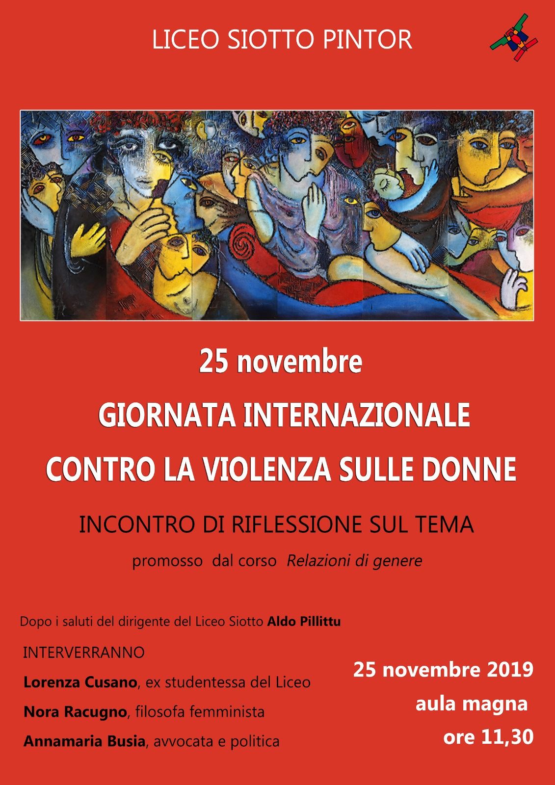 Un’iniziativa importante il 25 novembre, in occasione della Giornata Internazionale contro la violenza sulle donne, al liceo Siotto di Cagliari. Una mattinata di incontro e riflessione su un tema che appare purtroppo quotidianamente nelle cronache quotidiane. Novantacinque i femminicidi dall’inizio dell’anno. Una donna uccisa ogni 72 ore da un uomo a lei vicino, un compagno, un ex. Il carnefice è dentro le mura di casa. Una strage che sembra non avere fine: un fenomeno che non conosce confini, nè classi sociali, è endemico quello della violenza di genere. Di tutto questo si parlerà lunedì nell’aula Magna del Siotto, l’appuntamento è alle 11:30. L’iniziativa è promossa dal corso “Relazioni di genere” tenuto dalla professoressa Silvia Martelli.