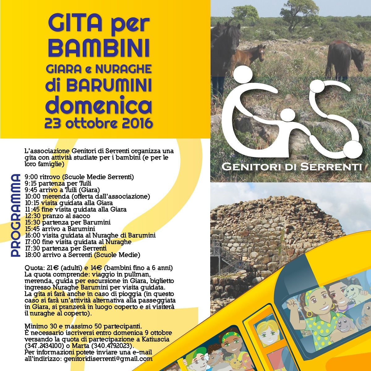 L’associazione Genitori di Serrenti organizza, per domenica 23 ottobre 2016, una gita per bambini (e famiglie) alla Giara e al nuraghe di Barumini.