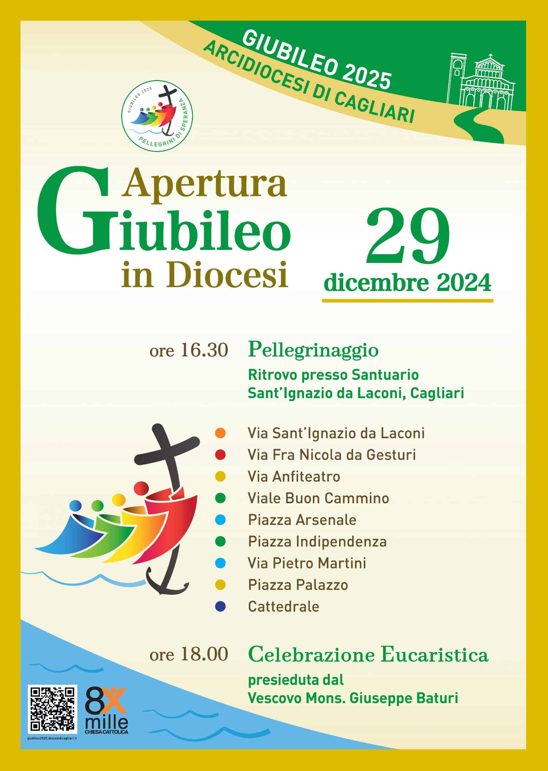 La Diocesi di Cagliari, nel pomeriggio di domenica 29 dicembre 2024, aprirà solennemente il Giubileo 2025. L’appuntamento per tutti è, alle 16.30, all’esterno del santuario Sant’Ignazio da Laconi, dove sono previste le attività iniziali della solenne apertura dell’Anno Santo, che saranno introdotte dall’inno del Giubileo e dall’invito dell’Arcivescovo a benedire e lodare Dio, seguito da un momento di silenzio. Subito dopo ci sarà la proclamazione del Vangelo e la lettura di alcuni stralci della Bolla di indizione dell’Anno Santo.