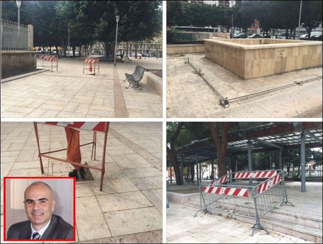 (Nella foto, una panoramica della piazza “circondata” dalle transenne, in basso a sinistra il consigliere comunale del Gruppo Misto, Alessandro Sorgia).