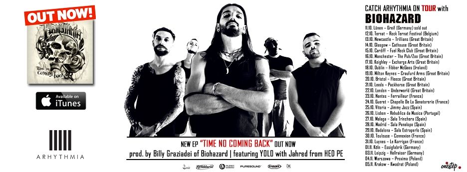 Nuova importante notizia per gli Arhythmia, metal band composta dagli algheresi Michele Canu, Matteo Lombardo, Riccardo Bevitori, Luca Moro e dal batterista oristanese Nicola Salis (session drummer 2013/14). Il gruppo inizierà una tournée europea insieme ai Biohazard, leggendaria band della scena hardcore proveniente da NewYork, famosa a livello mondiale. Gli Arhythmia avevano già instaurato un contatto con il chitarrista dei Biohazard, Billy Graziadei, che ha collaborato con la band nelle vesti di produttore del loro ultimo lavoro.