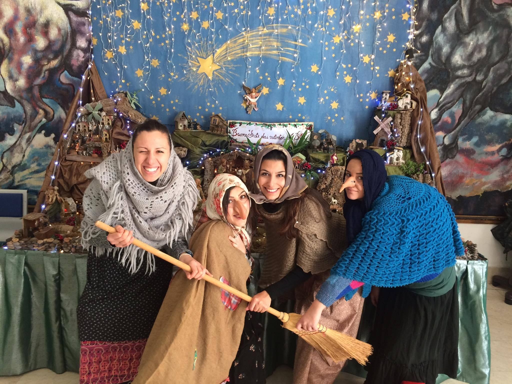 Un gruppo di amici e due sacchi rattoppati ricolmi di regali e dolciumi, così è iniziata l’avventura di cinque amici: Michele, Antonella, Francesca, Alba e Valentina. Questa mattina si sono presentati al Microcitemico di Cagliari e hanno deciso di regalare felicità ai suoi piccoli ospiti. Gonna, scopa, scialle e gobba, di questo si son vestite le ragazze, ma l’accessorio più bello e gradito è stato certamente il loro sorriso. Ad accogliere il simpatico gruppo è stato l’addetto all’ingresso che subito ha domandato.