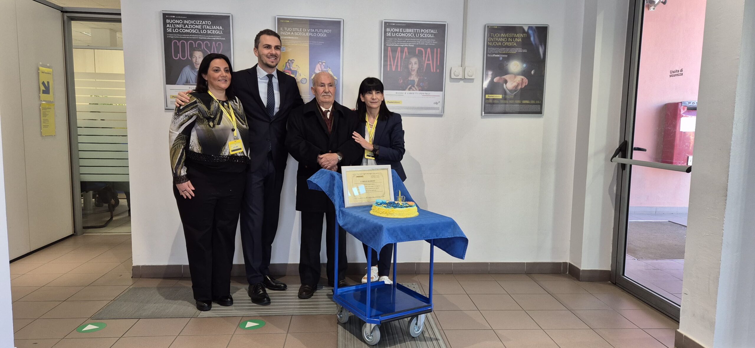 “Essere qui, oggi, per rendere omaggio al Signor Marrocu – ha commentato Daniele Evangelisti, responsabile provinciale – conferma la vicinanza di Poste Italiane alla comunità di Guspini. Celebrare, insieme al nostro affezionato cliente, un traguardo così importante ed al contempo ringraziarlo per l’affetto e la fiducia dimostrate negli anni, è fonte di grande soddisfazione. Il suo sostegno e la sua lealtà sono per noi motivo di grande orgoglio e un incentivo a proseguire al meglio con il nostro lavoro.”