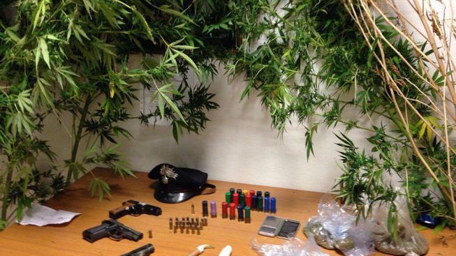Guspini, in casa 20 piante di marijuana, proiettili e armi