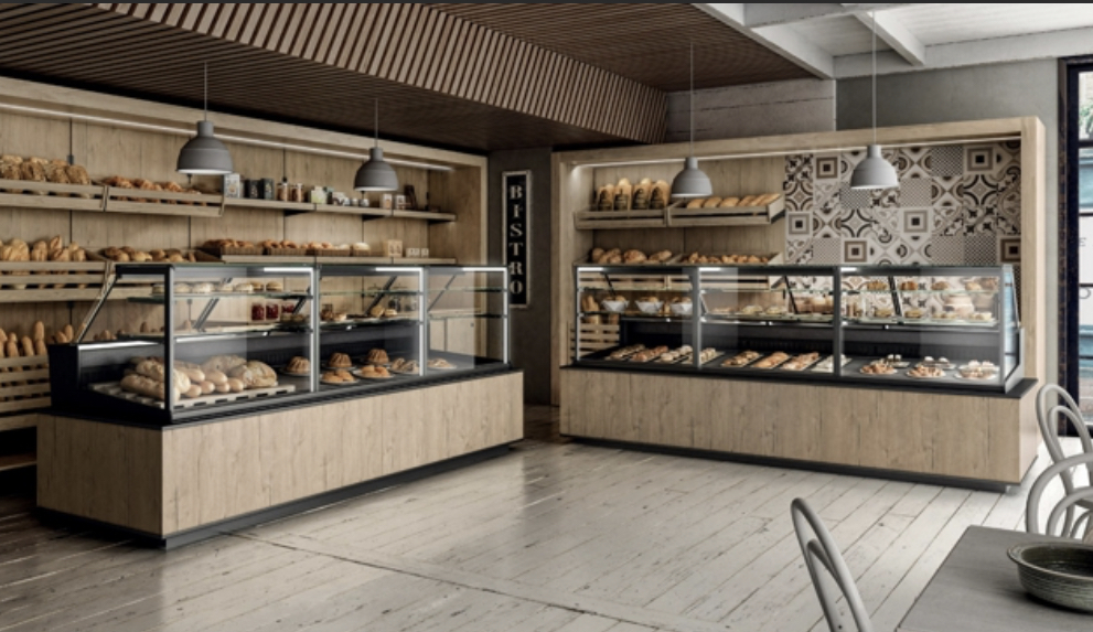 ∙Vetrine neutre: Essenziali per esporre pane, focacce e prodotti da forno. Questi espositori garantiscono una presentazione ordinata e invitante, mantenendo la freschezza degli alimenti.