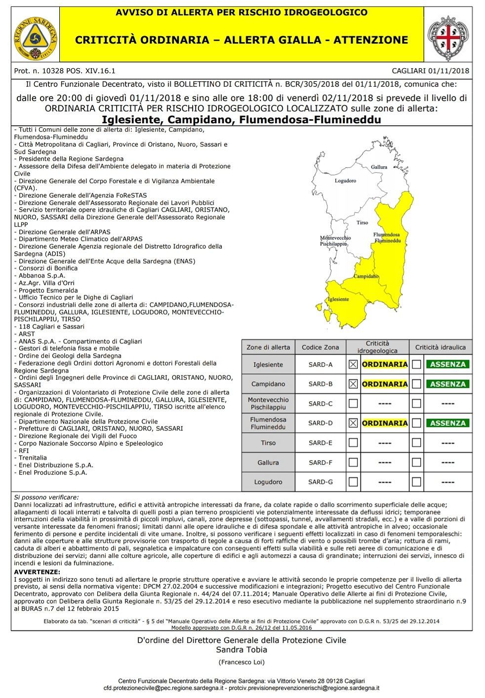 Ponte di Ognissanti con l’ombrello su mezza Sardegna cell allerta meteo gialla diramata dalla Protezione Civile dalle 20 del primo novembre e sino alle 18 del 2 novembre previsti temporali nella zona del Cagliaritano, e in generale del Campidano, e anche su gran parte del settore Ovest dell’Isola.