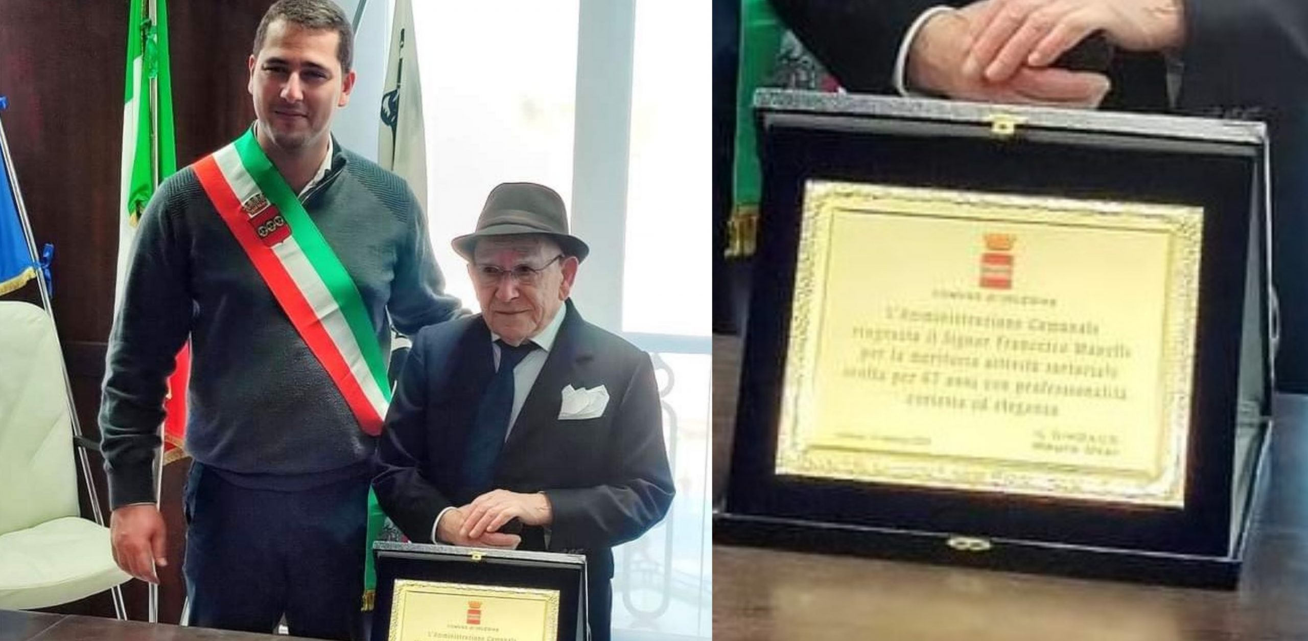 “Una benemerenza doverosa che, alla presenza di tante persone, gli abbiamo consegnato in segno di gratitudine e riconoscenza per oltre mezzo secolo di onorato servizio” ha comunicato il primo cittadino. “Un’esempio per tutti noi e in particolare per le giovani generazioni”.