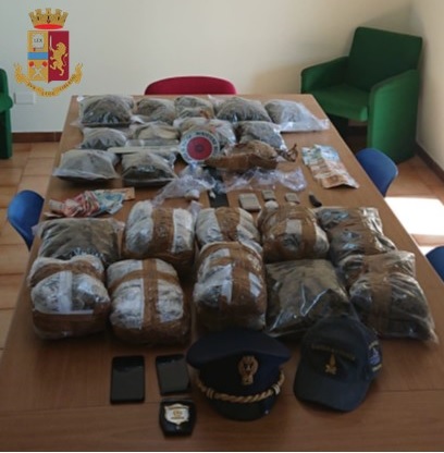 Sono stati rinvenuti e sequestrati 9,200 Kg di marijuana, 130 gr circa di eroina e 3 gr di cocaina, la somma di 1.865€ suddivisa in banconote di piccolo taglio, tre bilancini di precisione e materiale vario utile al confezionamento.