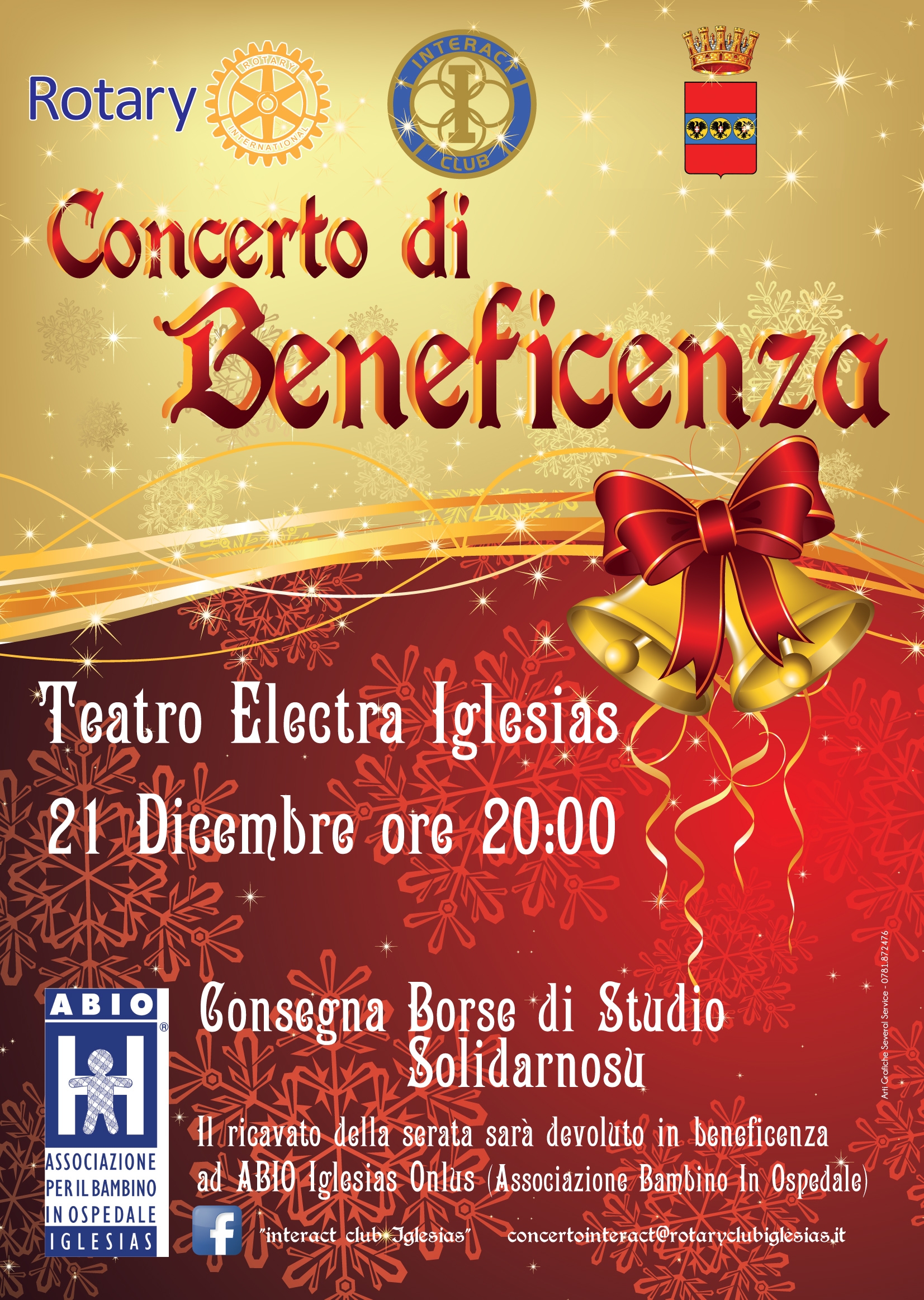 Interact è un club per ragazzi e ragazze nella fascia d’età che va da 12 a 18 anni che vogliono impegnarsi insieme per risolvere piccole questioni nella loro comunità. Infatti gli stessi svolgono progetti d’azione umanitaria e sociale pratici. Suoneranno tutti ragazzi dai 14 ai 18 anni di Iglesias e faranno brani dalla musica classica alla musica rock. Il biglietto costa 5 euro e tutto il ricavato sarà devoluto all’ABIO di Iglesias per un progetto in corso presso il reparto di pediatria del locale ospedale.
