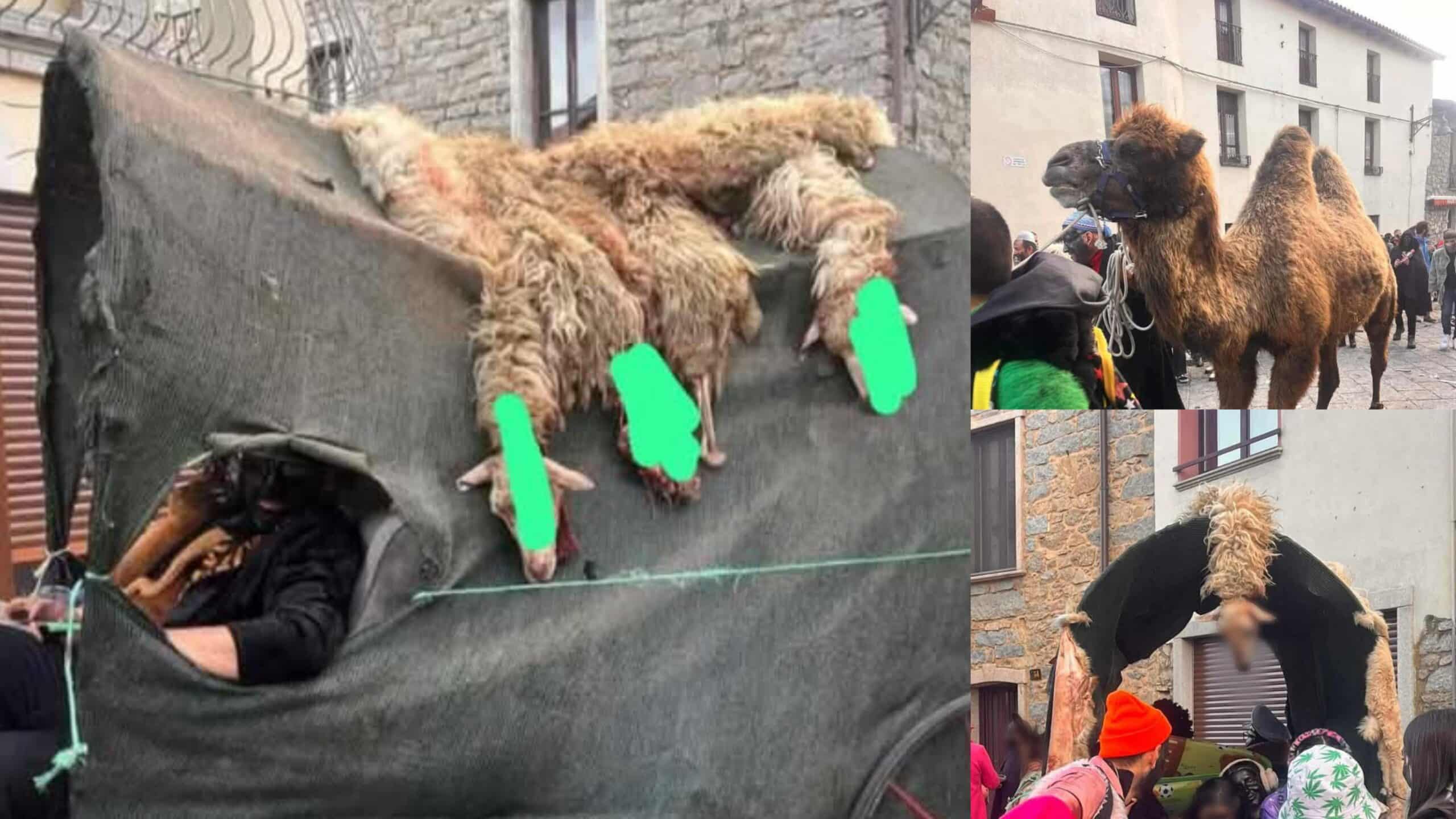 “Violazioni di legge sotto gli occhi di tutti: da un punto di vista sanitario, igienico, di sicurezza pubblica”: animali sanguinanti appesi per sfilare al posto dei pupazzi di carta pesta. Diversi ovini, alcuni dei quali solo con un pezzo di pelliccia e la testa. E poi un cammello, a spasso, tenuto al guinzaglio come se fosse un cagnolino.