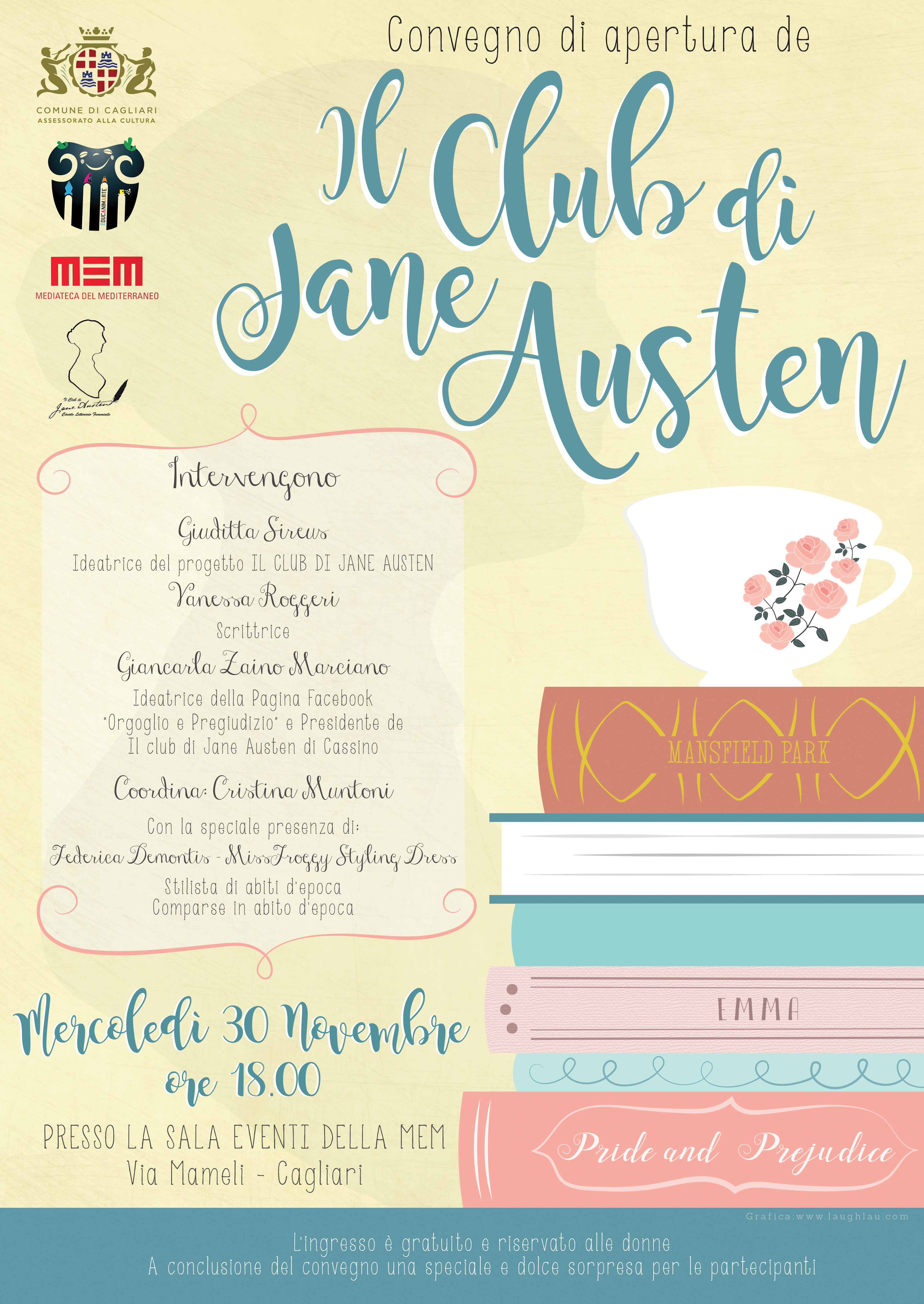 Per inaugurare l’avvio del club è stata organizzato un convegno di apertura che vedrà la partecipazione di: Giuditta Sireus (ideatrice del progetto del club di Jane Austen), Vanessa Roggeri (scrittrice), Cristina Muntoni (giornalista) e la straordinaria partecipazione di Giancarla Zaino Marciano, ideatrice e amministratrice della famosissima pagina facebook “Orgoglio e Pregiudizio”.