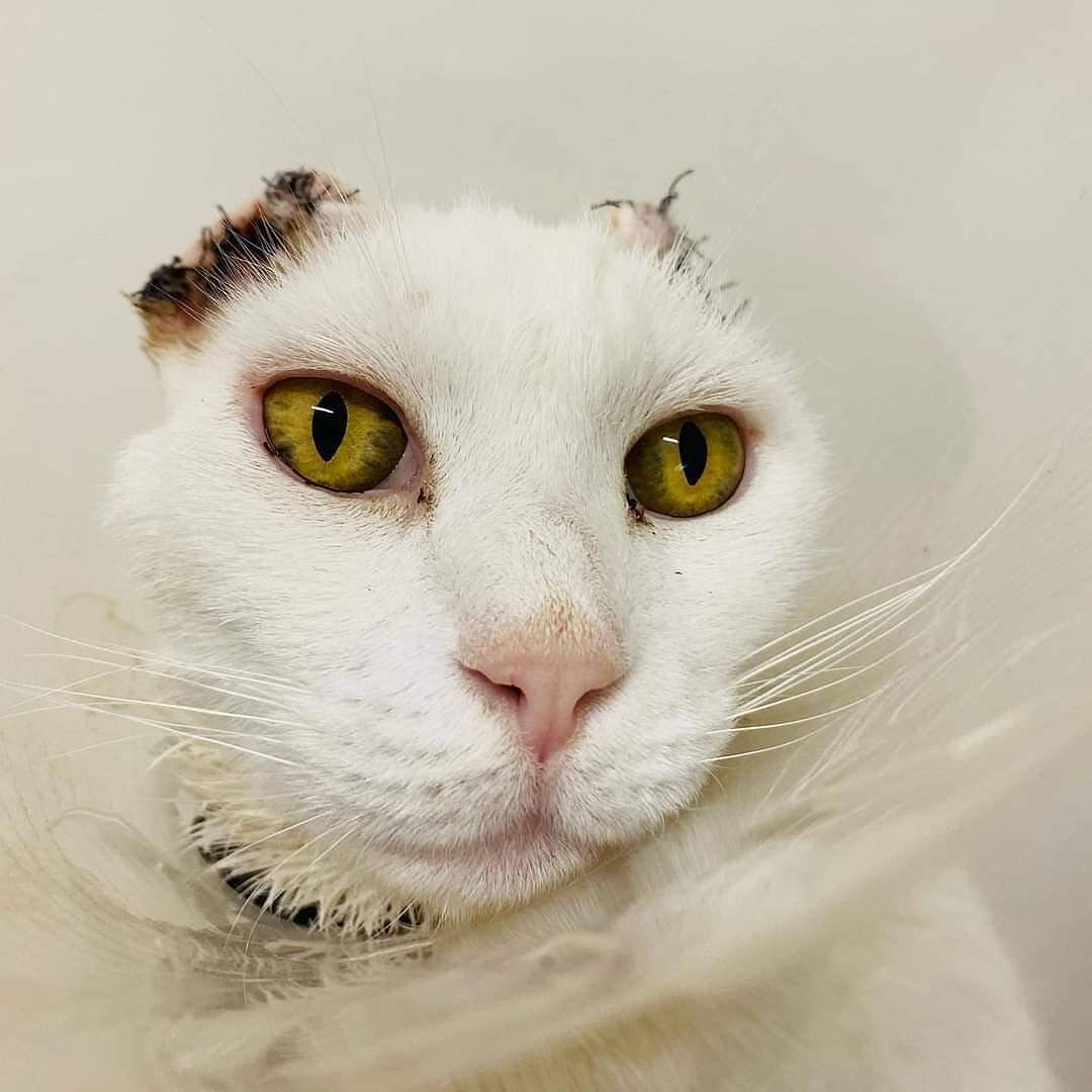 White il gatto bianco al quale gli sono state asportate le orecchie per un carcinoma ha trovato un’adozione lampo di solo 48 ore. E’ tornato indietro e cerca una famiglia che lo ami per sempre.