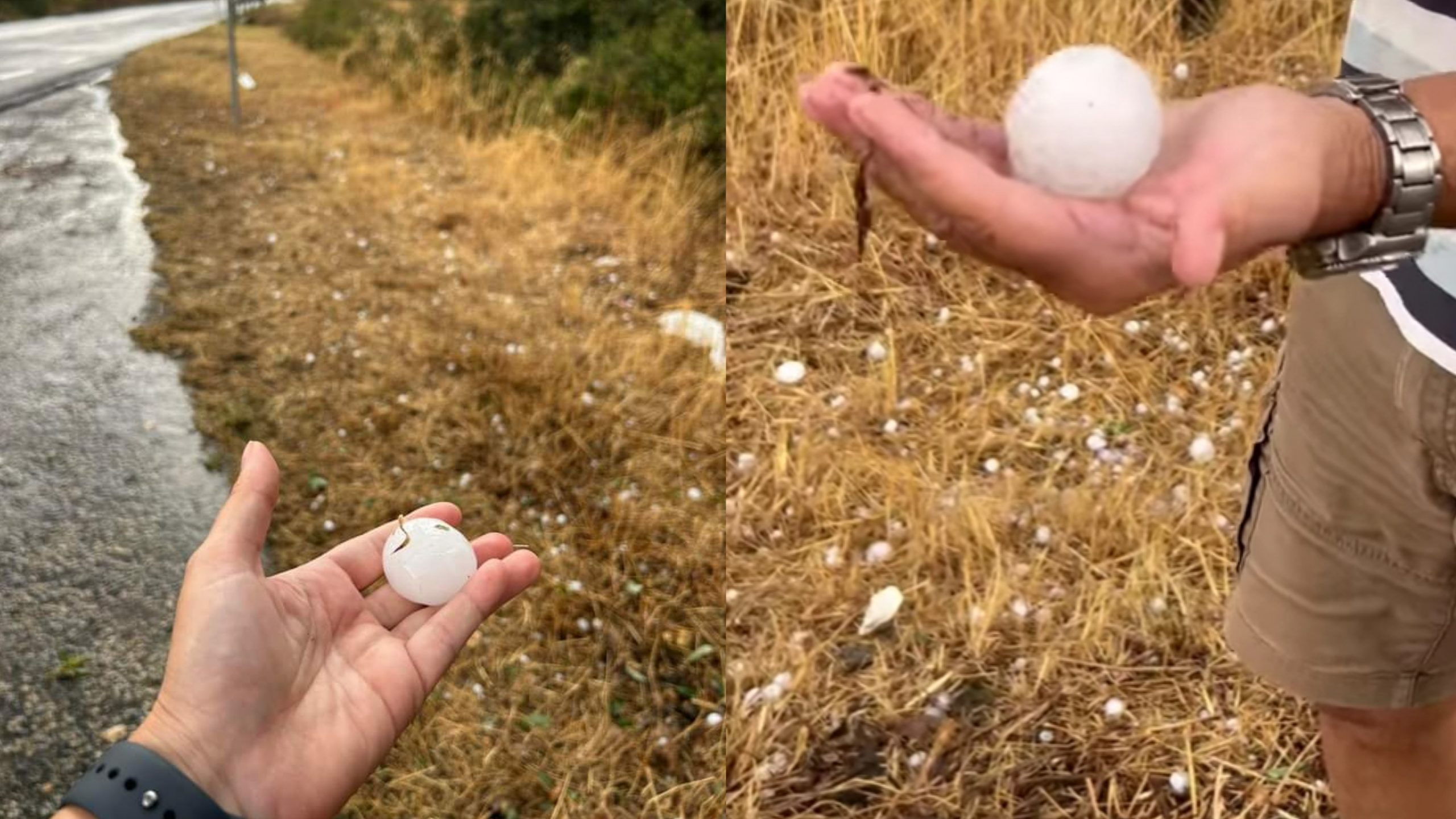Pattada – Maxi grandinata nel territorio del nord Sardegna, chicchi grandi quanto palline sono piombate dal cielo nel tardo pomeriggio di oggi. Mentre il sud dell’isola boccheggia e attende un cambio di rotta del clima, nella parte opposta non bastano gli ombrelli per ripararsi dal tempo assai bizzarro. Sono immagini che, quasi, si stenta a credere, ma sono vere quelle pubblicate da Sara Muggittu: la grandine, se così si può definire, caduta dal cielo e che ricopre le sterpaglie a bordo strada, bagnate dalla pioggia e dal ghiaccio a forma di palla. Un avvertimento, potrebbe essere interpretato così il fenomeno di poche ore fa: la tanto attesa pioggia, si spera, cada copiosa ma solo in forma di acqua e non di “macigni” come accaduto a Pattada.