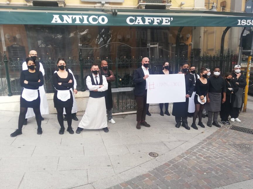 È stata alta l’adesione dei titolari e dipendenti di bar e ristoranti di Cagliari all’iniziativa “un minuto per noi” organizzata dalla Fipe-Confcommercio. A mezzogiorno, chi lavora con l’asporto o il domicilio, è uscito dal proprio locale per una protesta tanto simbolica quanto forte. Da San Benedetto sino alla Marina, passando per le vie dello shopping, sono tantissimi ad aver voluto farsi vedere, braccia incrociate e cartelli tra le mani, da chi stava passando in un ultimo venerdì di gennaio soleggiato. La crisi continua a correre, i ristori del Governo sono “insufficienti” e i mesi di cassa integrazione non ancora arrivati sono “almeno due o tre”.
