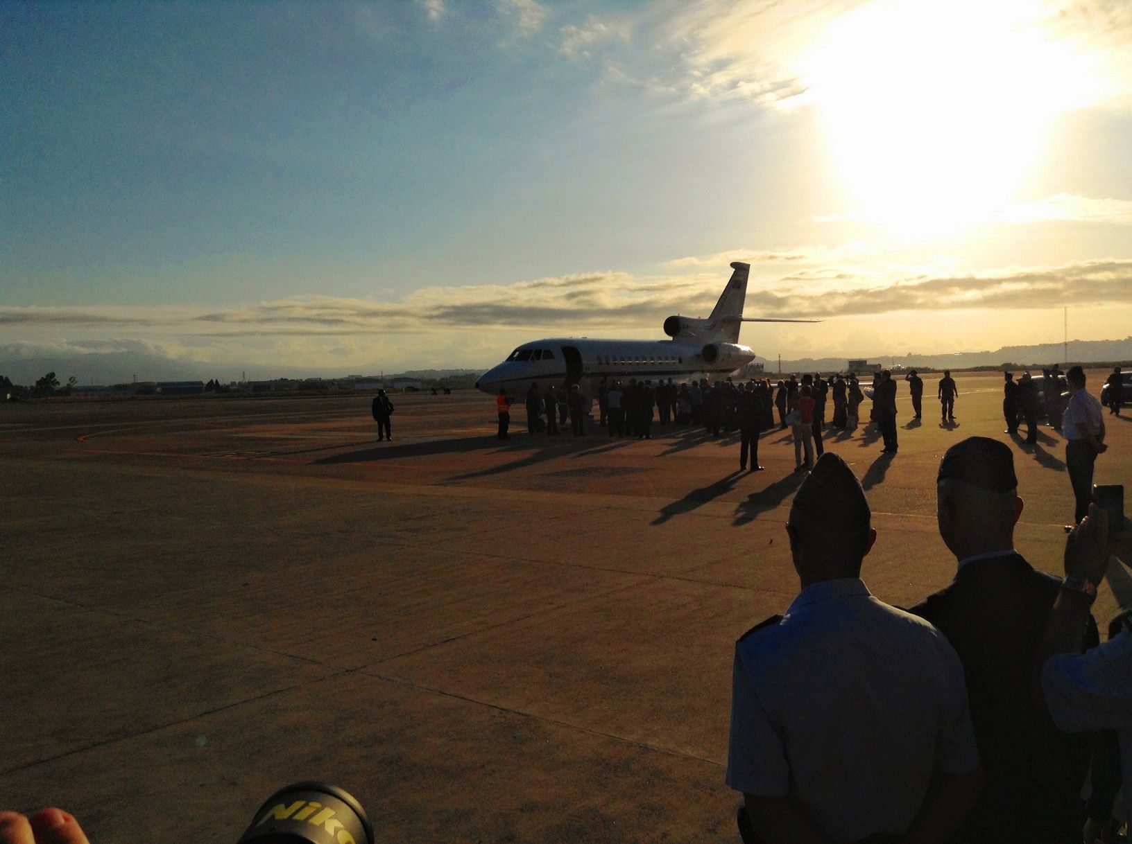 Arrivato il gran giorno. Papa Francesco è atterrato all’aeroporto militare di Elmas alle 8.15, in perfetto orario. Ad accoglierlo le Autorità: il governatore Ugo Cappellacci, il sindaco di Cagliari Massimo Zedda, il ministro della Giustizia Anna Maria Cancellieri, il sindaco di Elmas Valter Piscedda, e l’arcivescovo Arrigo Miglio. Dopo i saluti è salito a bordo di una modesta auto blu con la scorta vaticana. Lungo tutto il percorso una folla ha voluto assistere anche solo per un attimo al passaggio al Papa, che non ha smesso un attimo di salutare, e di “dare il cinque” ai fedeli che si sono avvicinati all’auto. Poi in viale Elmas il cambio auto: il pontefice a bordo della Papa mobile si dirige, isieme all’arcivescovo Miglio, verso Cagliari.
