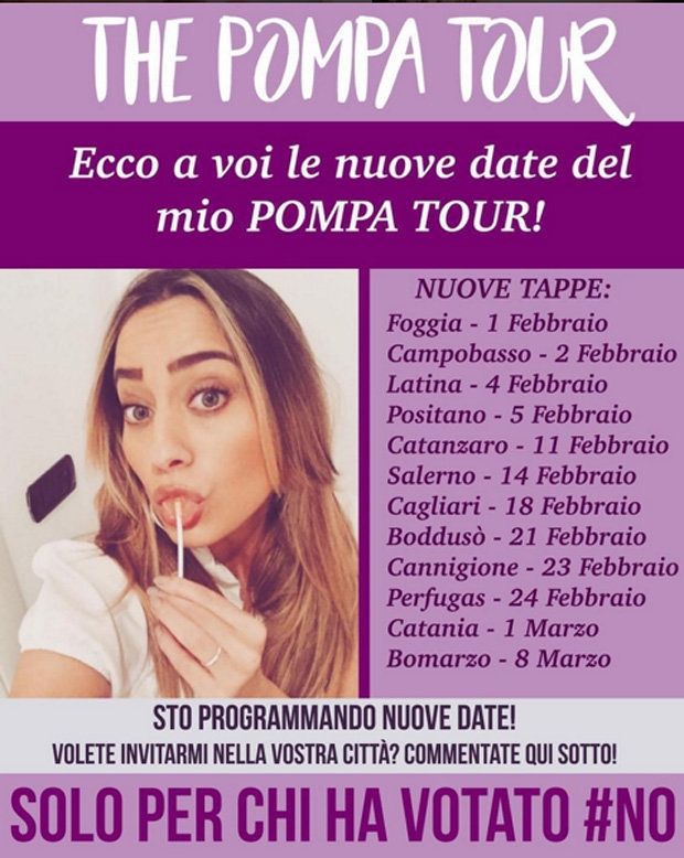 “I politici non mantengono le promesse”. Alzi la mano chi non l’ha pensato almeno una volta nella vita. Eppure c’è chi, grazie alla politica, le promesse pare mantenerle eccome. È il caso di Paola Saulino, artista attrice, perfomer e modella (almeno così si definisce sul personale profilo Facebook), che in occasione del Referendum costituzionale dello scorso 4 Dicembre dichiarò: “Prometto pratiche sessuali del tutto particolari a chi voterà NO, girerò l’Italia”.