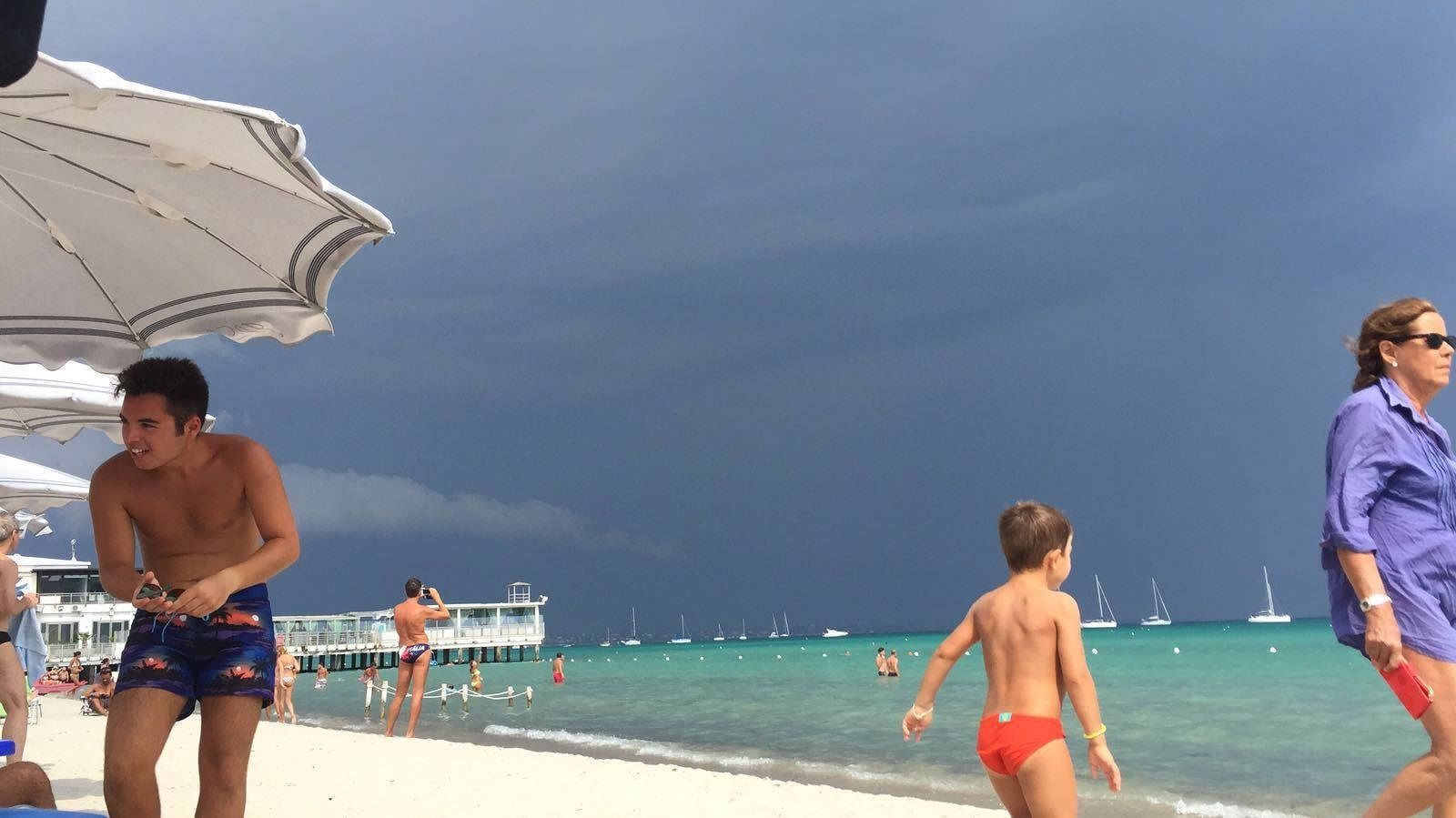 Il temporale estivo si abbatte su Cagliari, pioggia a dirotto e fuga dei bagnanti dalle spiagge. Intorno alle 15,30 il diluvio: gocce di enormi dimensioni e qualche chicco di grandine, con allagamenti a Pirri e anche in altre zone. La città riscopre il maltempo proprio quando in tanti si stavano godendo una domenica di sole al mare, anche se il cielo già dall’ora di pranzo non prometteva niente di buono. La foto che vedete è stata scattata a Pirri dal nostro lettore Gianni, e spedita alla redazione di Cagliari Online su Whatsapp al 3420428755.