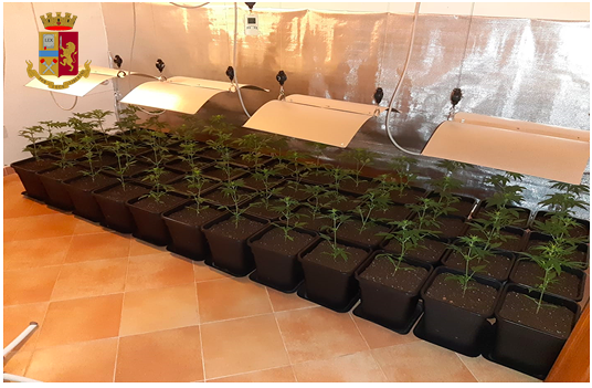 Sono state sequestrate 50 piantine di marijuana in coltivazione e in avanzato stato di crescita, insieme a 100 vasetti con seme appena posto, 3 infiorescenze di marijuana, vari para luci, ventilatori, misuratori di temperatura e grado di umidità, bilancini elettronici , macchine per il sottovuoto, vari testi per la coltivazione della marijuana e cataloghi delle semenze.