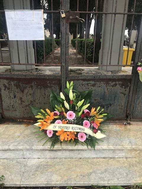 “In vostro ricordo”, il commovente omaggio con i fiori davanti al cimitero chiuso di San Gavino. La bella iniziativa del comitato dei cittadini attivi di San Gavino: “Considerata la chiusura del cimitero in seguito alle restrizioni, in qualità di componenti del gruppo “ CITTADINI ATTIVI SAN GAVINO “abbiamo voluto posizionare personalmente, questo piccolo pensiero, davanti all’ingresso del cimitero in ricordo di tutti i nostri defunti. La frase “ IN VOSTRO RICORDO “ vuole essere un semplice pensiero per accompagnare un gesto floreale e fare in modo di raggiungere indistintamente tutti i defunti”.