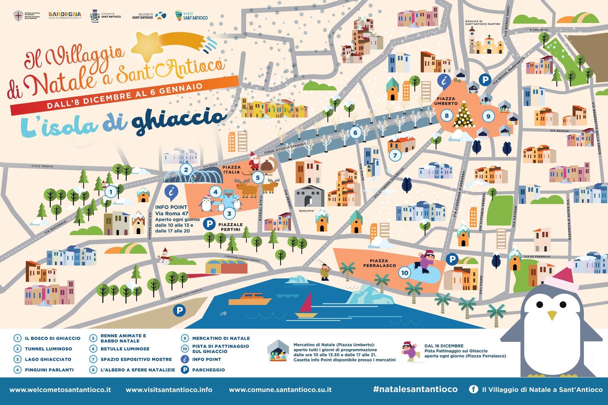 Nell’ambito del Villaggio di Natale e di un programma folto e variegato, tanta animazione per i bambini, con spettacoli musicali, laboratori (due esempi: “Prepariamo i biscotti per Babbo Natale” o “Sotto zero, esploriamo i cristalli di ghiaccio”) e la consueta iniziativa “Caccia allo shopping” a cura del Centro Commerciale Naturale Welcome to Sant’Antioco. Ma c’è anche un’altra novità: la pista di pattinaggio su ghiaccio che, allestita in piazza Ferralasco, verrà inaugurata il 18 dicembre e sarà aperta tutti i giorni. E ancora, anche quest’anno è presente il mercatino di Natale, con una serie di casette in legno posizionate in piazza Umberto (sulla quale domina l’albero alto 9 metri) con hobbisti e produttori provenienti da tutte le parti della Sardegna che si alterneranno fino al 6 Gennaio: aperto tutti i giorni di programmazione (dalle 10.00 alle 13.30 e dalle 17.00 alle 21.00), conta anche una casetta Info point per tutte le informazioni necessarie ai visitatori e per ritirare la mappa cartacea de Il Villaggio di Natale.
