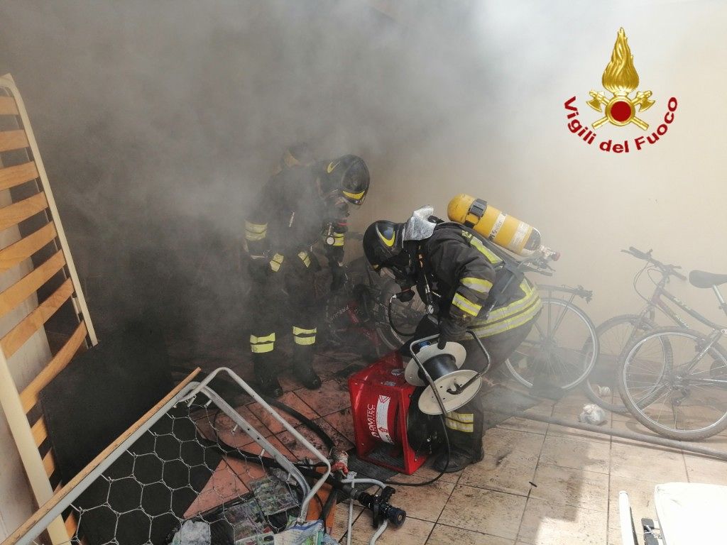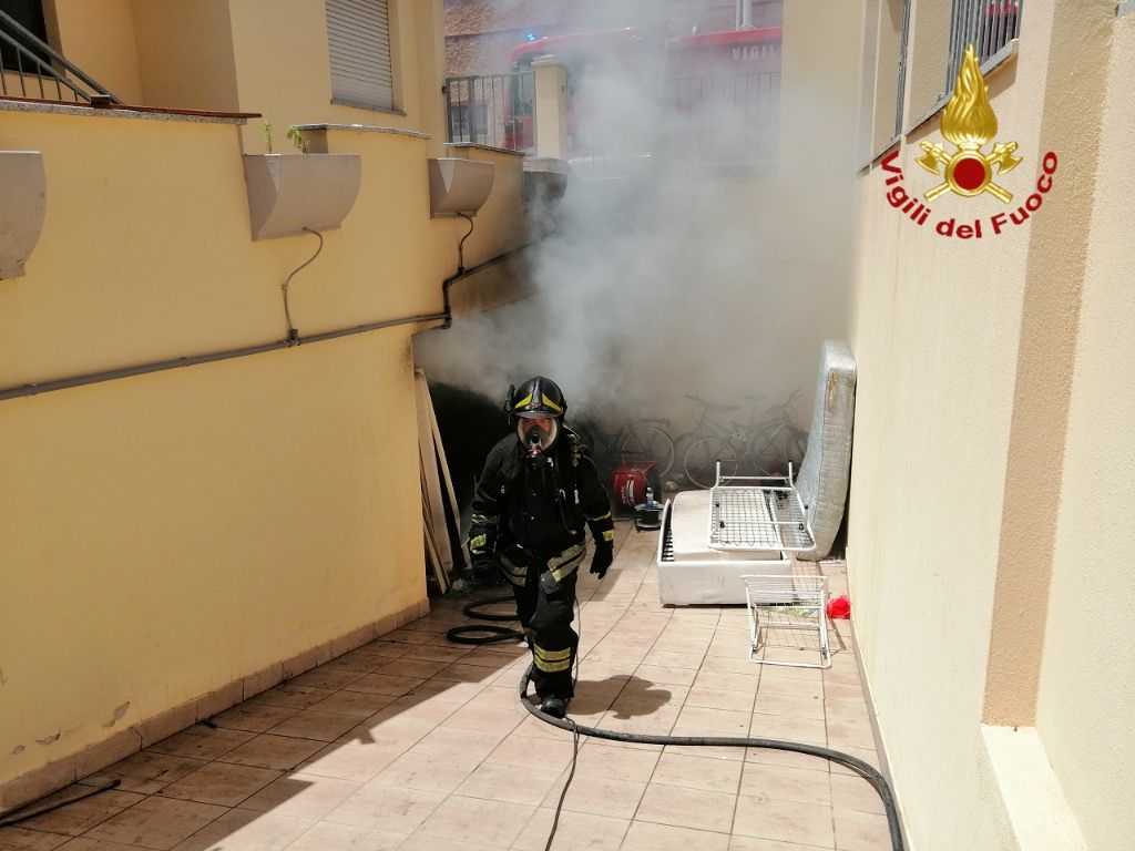Le fiamme hanno coinvolto alcuni arredi e materassi stoccati all interno dei locali. In via precauzionale gli occupanti degli appartamenti soprastanti (adibiti a casa famiglia) sono stati fatti evacuare immediatamente da un collega VVF libero dal servizio.