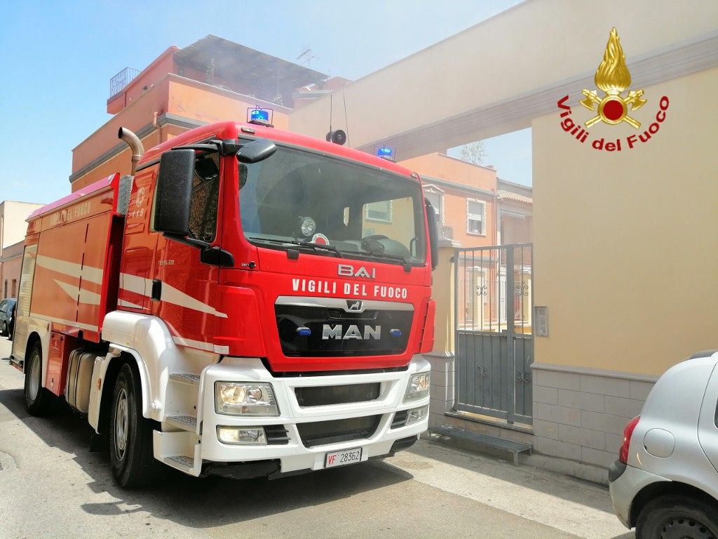 Intervento degli uomini del corpo del comando di Cagliari per un incendio di un locale interrato di circa 50mq in via delle Spighe angolo via Colonna a Pirri.