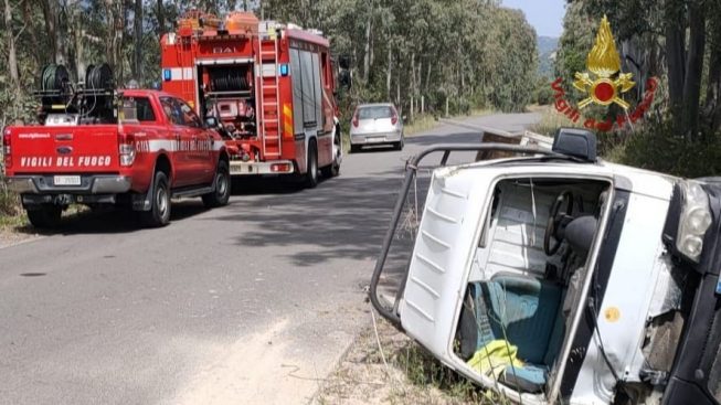 Per cause ancora da accertare un uomo alla guida di un mini autocarro (ape poker) è uscito di strada e il messo, successivamente all’impatto, si è ribaltato su un fianco. Il conducente è rimasto ferito.